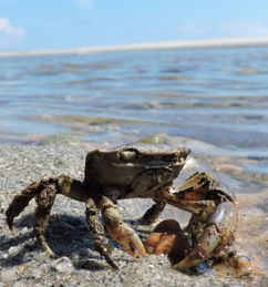 The Crablands is a place that we as Coasters often take for granted, we treat it as a pathway to get to the fish; we trapse across it, quad bike through it, run the dog over it, drive across it...... and miss an entire universe of ecological wonder and drama along the way. Science calls it the inter-tidal zone, but the Crablands is a much more apt description because it is a badlands, full of these tiny creatures eeking out their living in an ever-changing environment where there is no guarantee of life from one moment to the next.